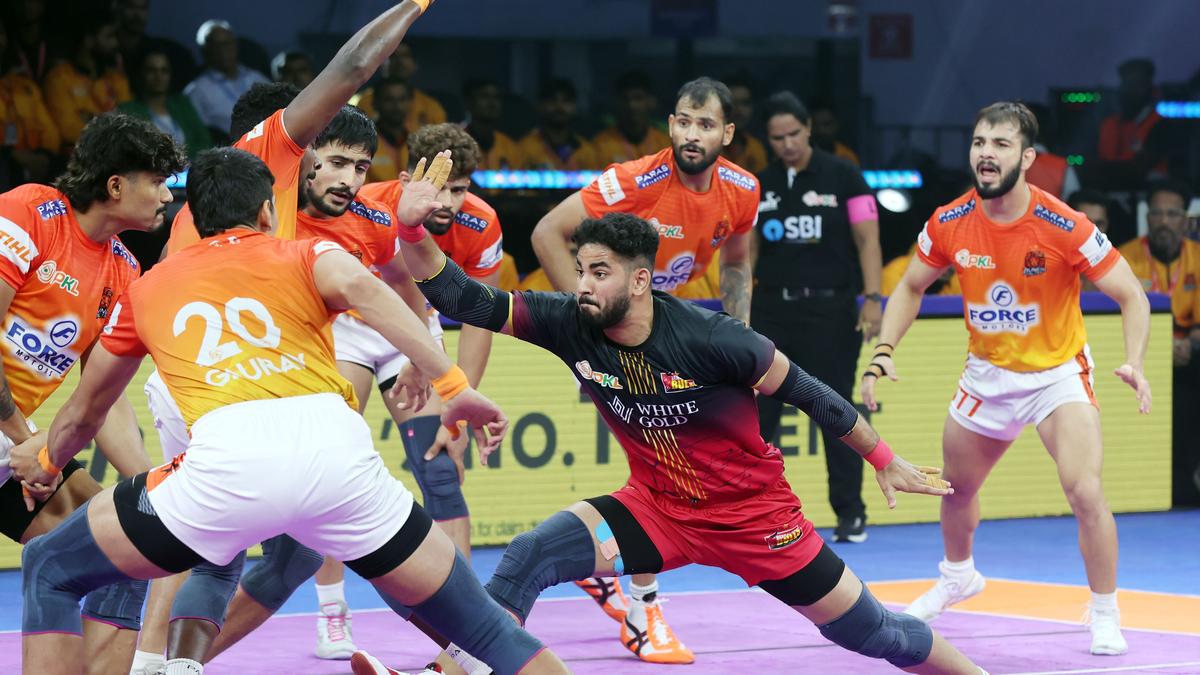 Puneri Paltan edged Bengaluru Bulls in a tie-breaker for the second time this season, clinching a 29-29 decider at the SDAT Multi-Purpose Indoor Stadium in Chennai on Thursday. Playing without skipper Aslam Inamdar, the Paltan delivered an all-round performance to complete the double over the Bulls and rise to the top of the points table.